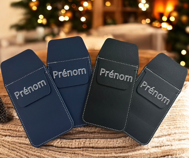 Des étuis en similicuir à stylo ou autre, personnalisable pour mettre dans la poche.